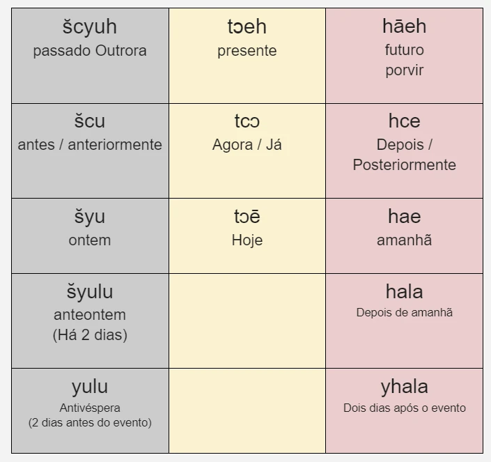 | Ciclo Diário | šyu | tɔē | hae |